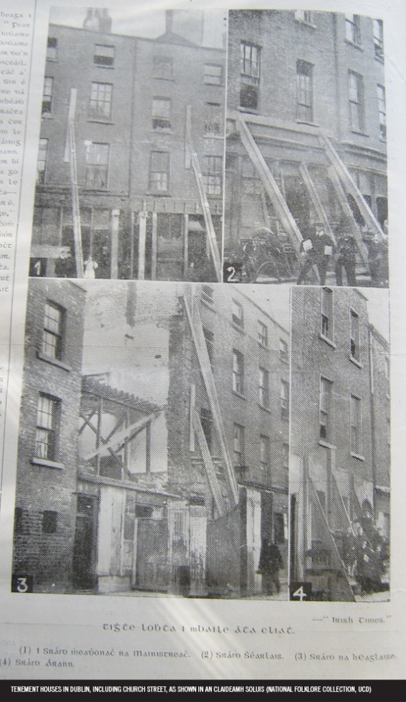 Two tenement houses on Church Street, numbers 66 and 67, collapse, resulting in the deaths of seven people, including three children. The tragedy causes a public outcry, leading to a fundraiser which raised £2,000 and the establishment of a Housing Inquiry commissioned by Augustine Birrell, the Chief Secretary of Ireland.