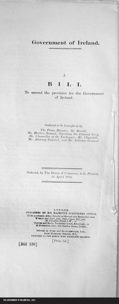 Prime Minister Herbert Henry Asquith introduces the Third Home Rule Bill to the House of Commons. The Bill proposes to establish a greater degree of Irish autonomy, with a bicameral parliament to replace the British administration at Dublin Castle. Britain would still retain a strong degree of influence over Irish affairs, however, and Irish MPs would continue to hold seats in Westminster. The Bill is supported by Asquith’s Liberal Party and the Irish Parliamentary Party, led by John Redmond, on whom the Liberals rely for support. Those opposing the Bill include the Conservative Party and the Irish Unionist Party.