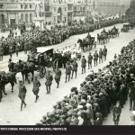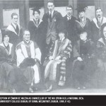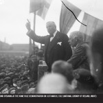 Most allegiances in UCD at this time lay firmly with the Irish Parliamentary Party, as witnessed at the Home Rule demonstration in March 1912. An estimated 100,000 supporters throng the streets of Dublin, gathering at four platforms to hear speeches from prominent nationalists, including John Redmond. The fourth platform, at the base of the O’Connell monument, is occupied by UCD. Staff and students, including the University’s President Denis Coffey, speak in favour of Redmond’s movement. The next day, the Irish Independent describes it as “one of the most imposing sections of the demonstration” and a “remarkably fine display”.