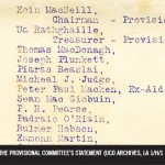 After John Redmond calls on the Irish Volunteers to fight in the War, the provisional committee of the Irish Volunteers, headed by Chief of Staff Eoin MacNeill, leads a split in the organisation. It is noted that “less than two dozen students and about half a dozen junior members of the academic staff” support MacNeill in his stance. Nationally, 93% of the force side with Redmond.