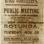 Following a keen public response to Eoin MacNeill’s article “The North Began”, a public meeting is held at the Rotunda, where the Irish Volunteer movement is launched. Over 3,000 men join the organisation on the night, including Patrick Pearse and Eamon de Valera. By the summer of 1914, numbers rise to an estimated 130,000-180,000.